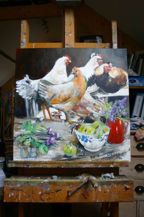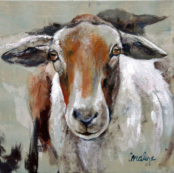 Coraline heeft altijd honden gehad en lang haar atelier op een boerderij, natuurlijk waren deze ook een leuk onderwerp om te schilderen.